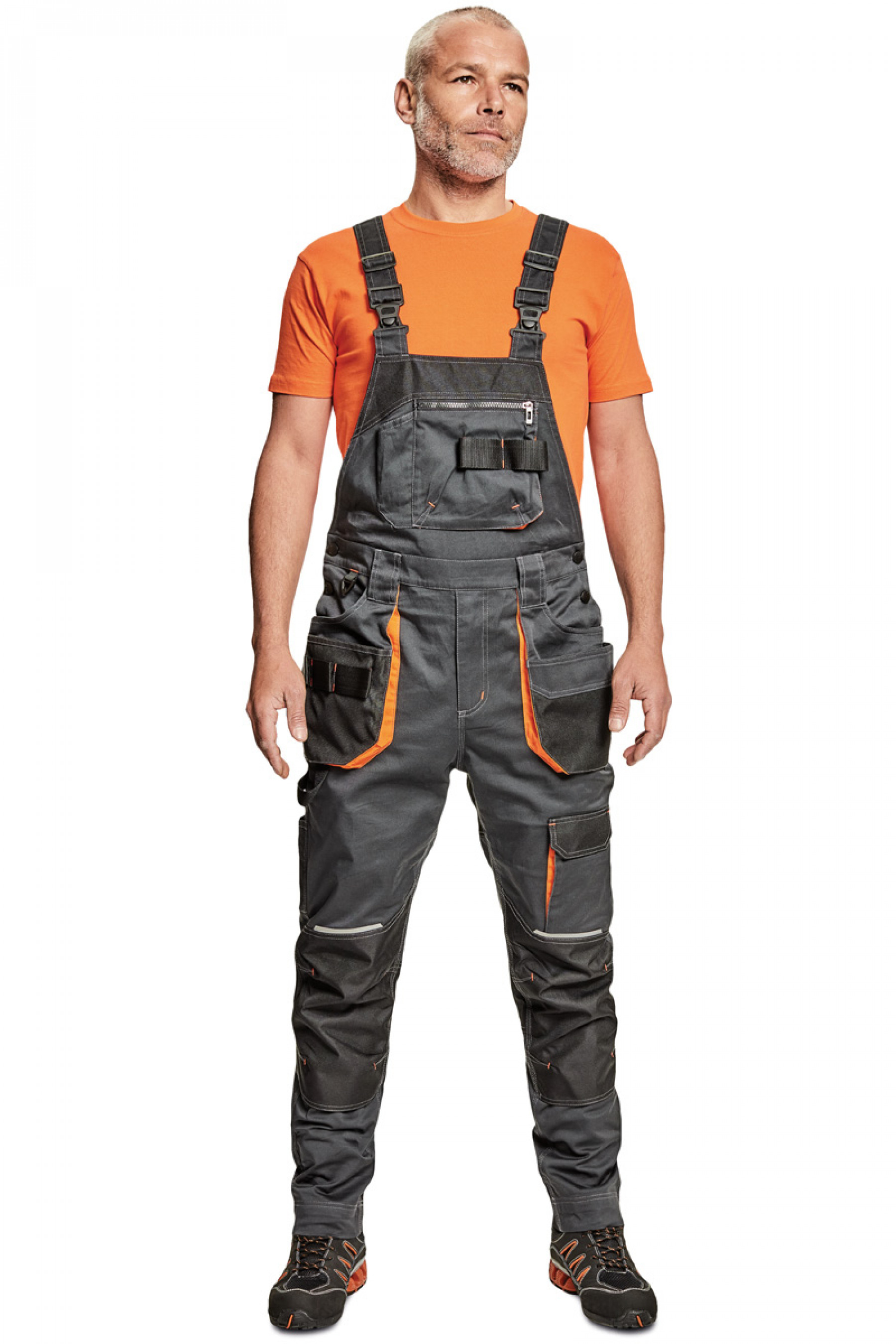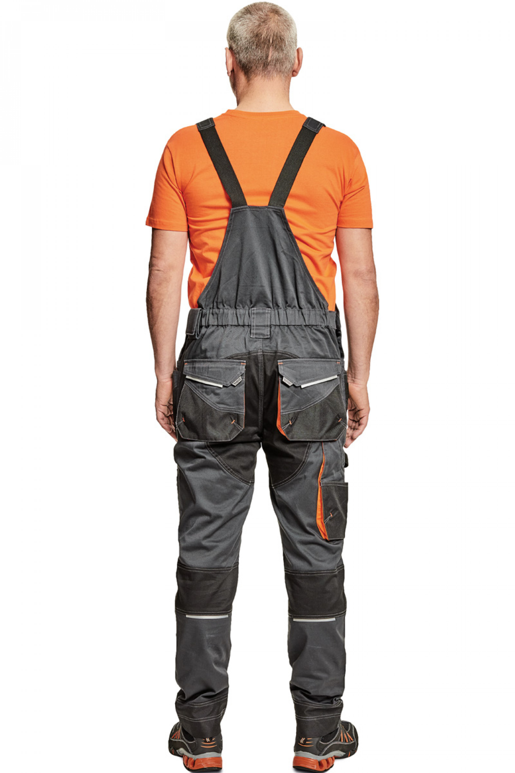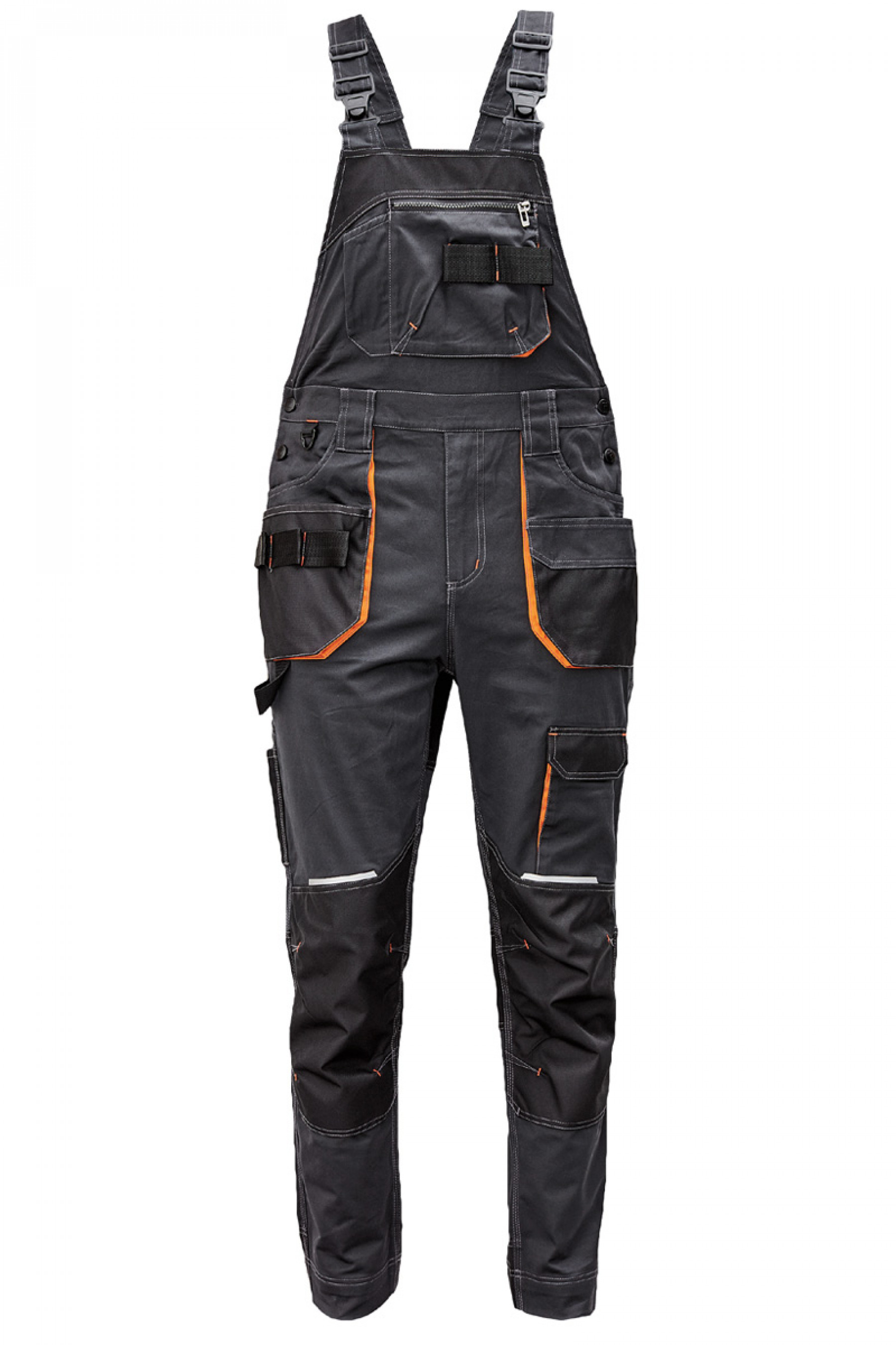 Сучасний робочій напівкомбінезон з бавовняної канви з додаванням поліестеру.